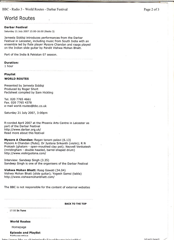 BBC Radio 3 - World Routes - Darbar Festival, 21st July 2007