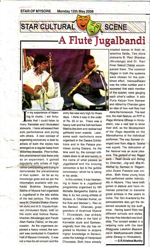 Star of Mysore - Aug 9 2010 : City flautist bags Ustad Bismilla Khan Yuva Puraskar